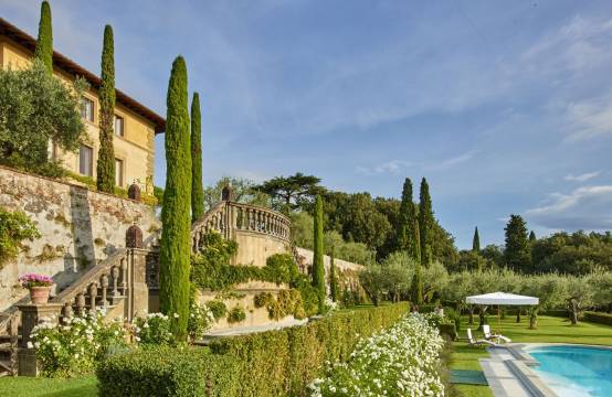 Villa Il Palagio is al meer dan twintig jaar het vakantiehuis van Sting en zijn vrouw Trudie Styler in Toscane. Al sinds de zestiende eeuw wordt hier wijn gemaakt. Het beroemde echtpaar heeft niet alleen de villa passievol gerestaureerd, maar ook de vijftien hectaren wijngaarden naar een hoog niveau gebracht en biologisch gecertificeerd. Van druif tot wijn wordt bovendien gewerkt met elementen uit de biodynamie.